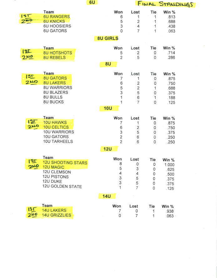 2026 BASKETBALL FINAL STANDINGS